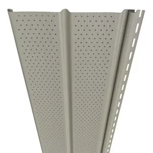 - Standard Double 5″ Vinyl Soffit is available in solid and vented designs. It can be used to attractively finish porch ceilings or for soffit applications